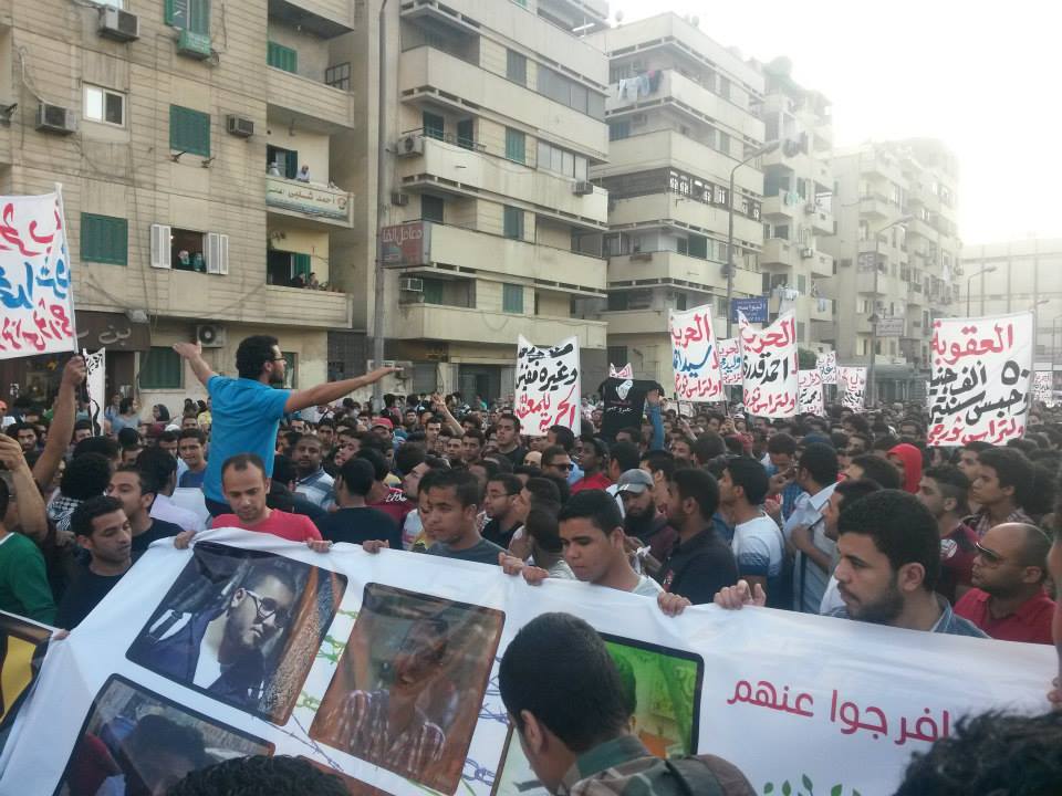 Thousands of activists marched to al-Ittihadiyya presidential palace in Cairo on 26 April to demand the release of political prisoners and against law which criminalise protest.