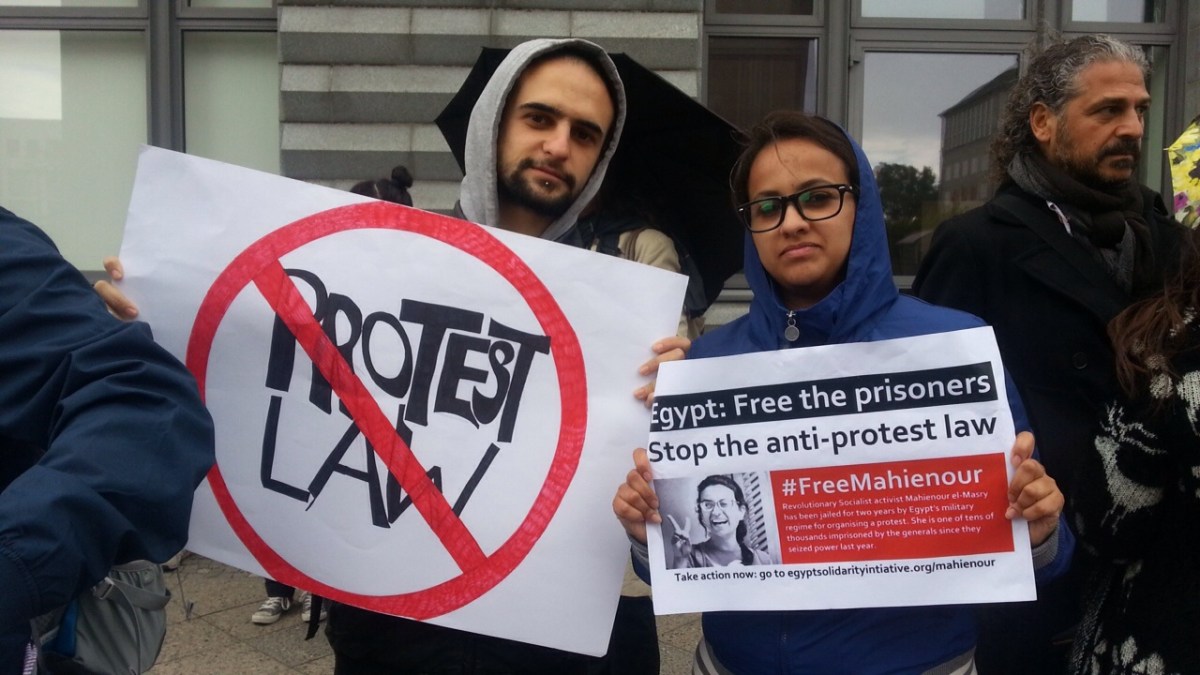 Berlin #noprotestlaw rally Published June 21, 2014 at 1280 × 720 in International solidarity lifts #noprotestlaw campaign while Cairo march attacked ← Previous #noprotestlaw in Berlin outside the Egyptian embassy