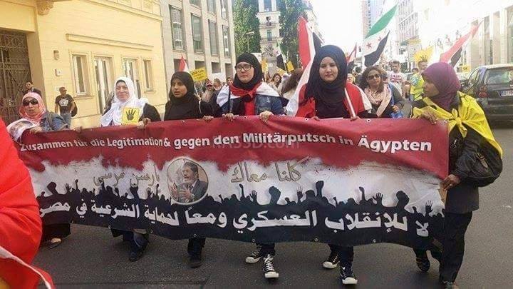 Supporters of the Muslim Brotherhood mobilised hundreds in several marches and rallies around Berlin, including a protest at the historic Brandenburg Gate and demonstrations greeting Sisi’s motorcade.