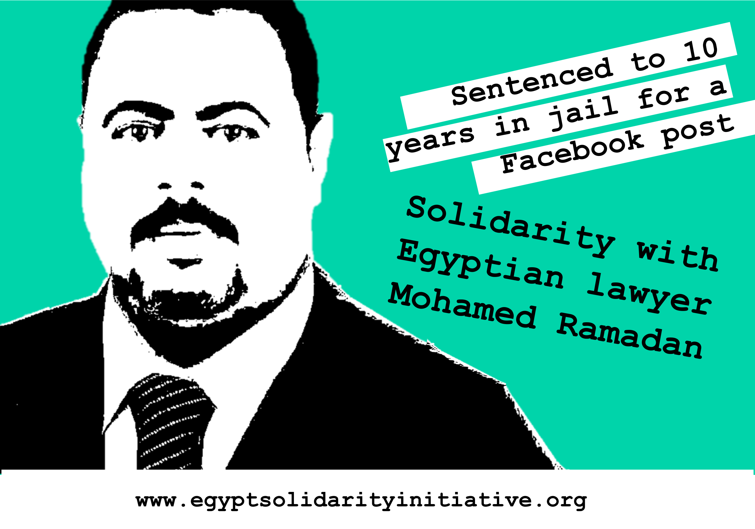 Vaguely worded ‘counterterrorism’ laws are once again being used by the Egyptian authorities to clamp down criticism and silence campaigners and activists. Alexandria-based lawyer Mohamed Ramadan, who is well-known in the city for his work in defending trade unionists and political activists, was sentenced to ten years in jail this April for allegedly ‘insulting’ Egyptian president Sisi on his Facebook page. He has also been banned from using the internet for five years and sentenced to five years under house arrest on the completion of his sentence.