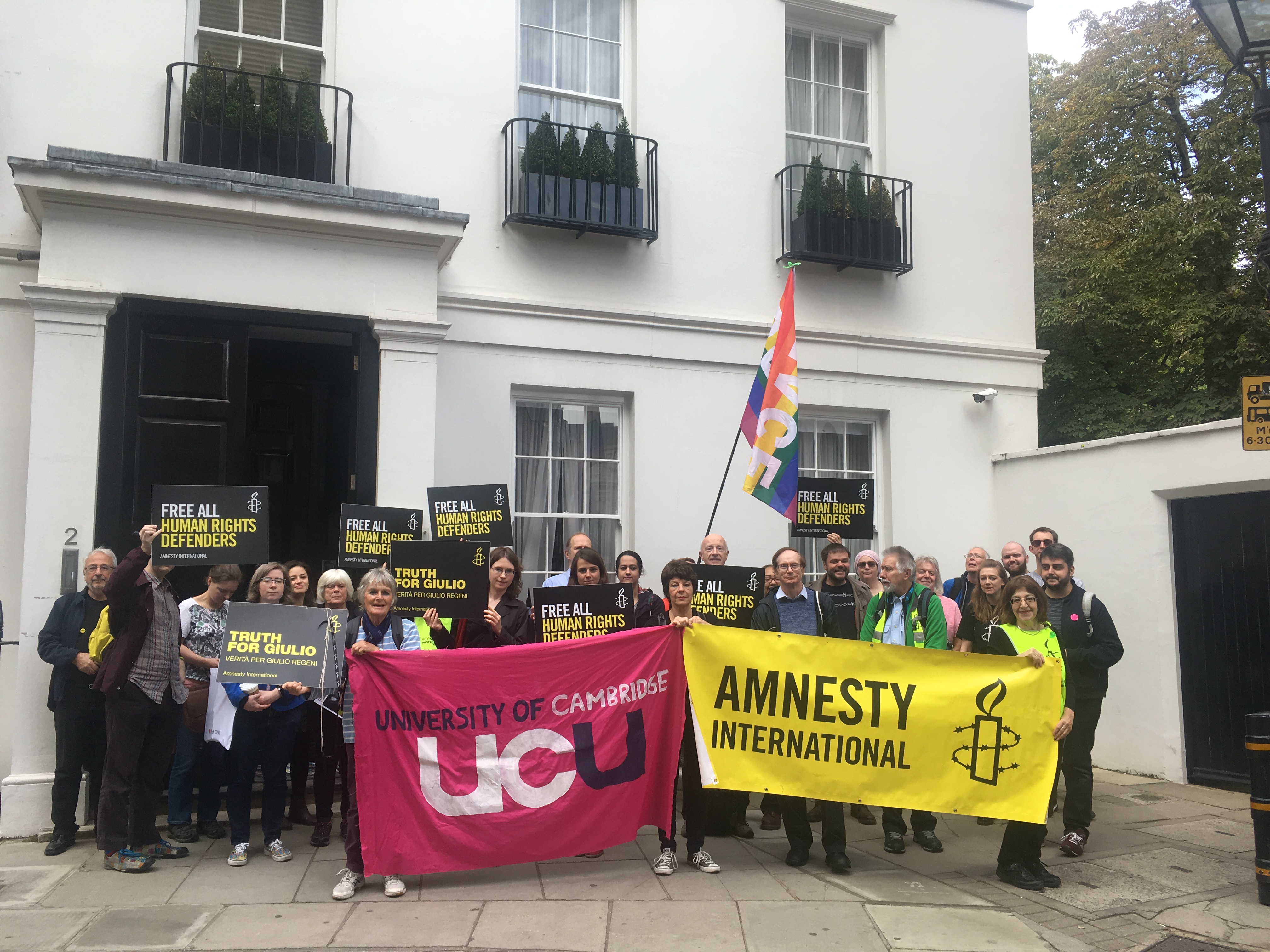 regeni_postcard_handin_230917_annealexander1 Published September 27, 2017 at 4032 × 3024 in Embassy protest highlights lack of progress in Giulio Regeni case Next → The protest delegation en route to the Egyptian embassy
