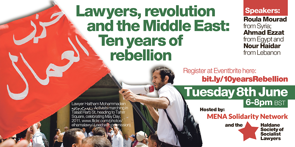 Hosted by MENA Solidarity Network and the Haldane Society of Socialist Lawyers.