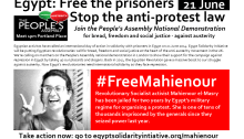 Egyptian activists are organising a series of events building resistance to the anti-protest law and solidarity with the detainees. They are calling for activists around the world to make 21 June a day of action and protest calilng for the release of prisoners like Mahienour el-Masry, Mohamed Soltan, and Alaa Abdel Fattah. Events are being…